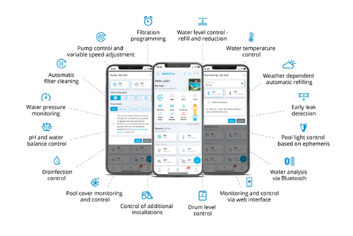 Designed for customers and for fun, with non-technical interfaces, including backyard control and access to all pool features (lights, heating, fountains, etc.). The App also allows for instant feedback to and from your clients.
