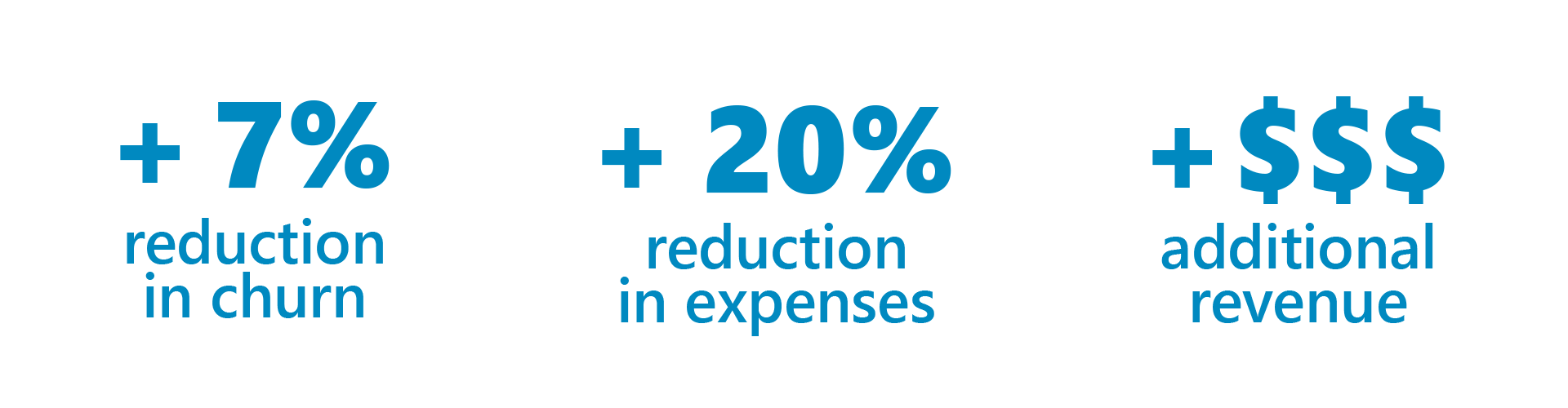 • Increased Revenue and Differentiation: Now that you can deliver a uniquely reliable service, it’s much easier to add new service levels and additional revenue streams with high margin products and services.