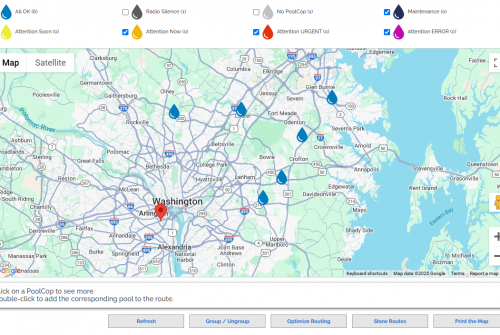 Once installed on any pool, anywhere, you become instantly connected to the pools you service in real time. PoolCop and The ProPoolCop app provides an easy to understand snapshot view of all your pools at your fingertips. Further details are found easily by clicking on the color coded drop of water. Combined with real time alerts, you can finally make informed decisions and become the proactive service that exceeds expectations.